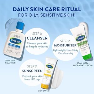 Cetaphil Oily Skin Beginner Kit – Cetaphil Paraben, Sulphate-Free Gentle Skin Hydrating Face Wash Cleanser with Niacinamide, Vitamin B5 for Dry, Normal Sensitive Skin + Cetaphil Moisturising Cream for Face & Body, Normal to oily skin + Cetaphil Sun SPF 50+ Sunscreen For Combination Skin Type, Very High Protection Lightweight Gel, Water-resistant, Vitamin E